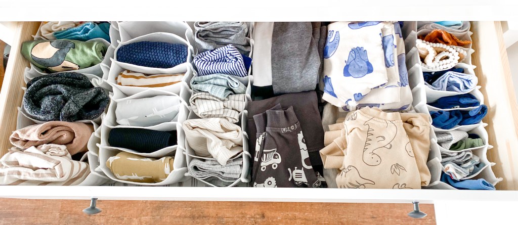Hier in der Wickelkommode sind aber die Kleidungsstücke, die man griffbereit und oft benötigt.
